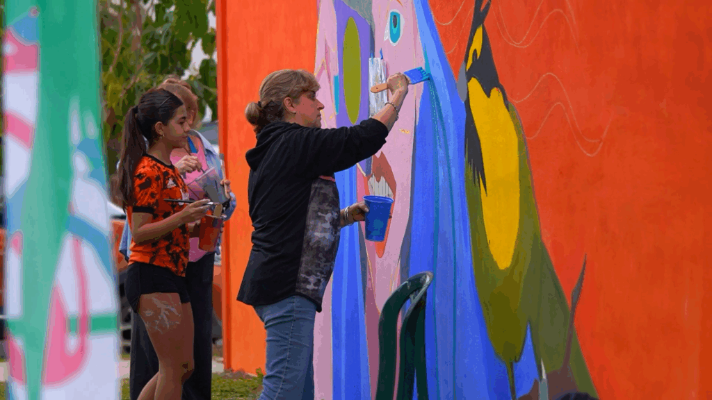 Impulsamos la creación de murales en vivo, realizados frente al público en plazas, escuelas y espacios comunitarios. Estas intervenciones reflejan la identidad pampeana, sus colores, símbolos y paisajes, y transforman cada lugar en un testimonio de pertenencia.