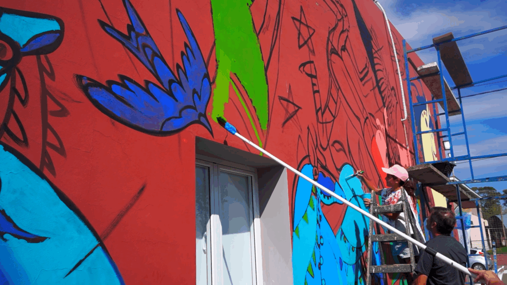 Ejemplo: murales móviles que luego se trasladan a instituciones educativas y centros culturales.